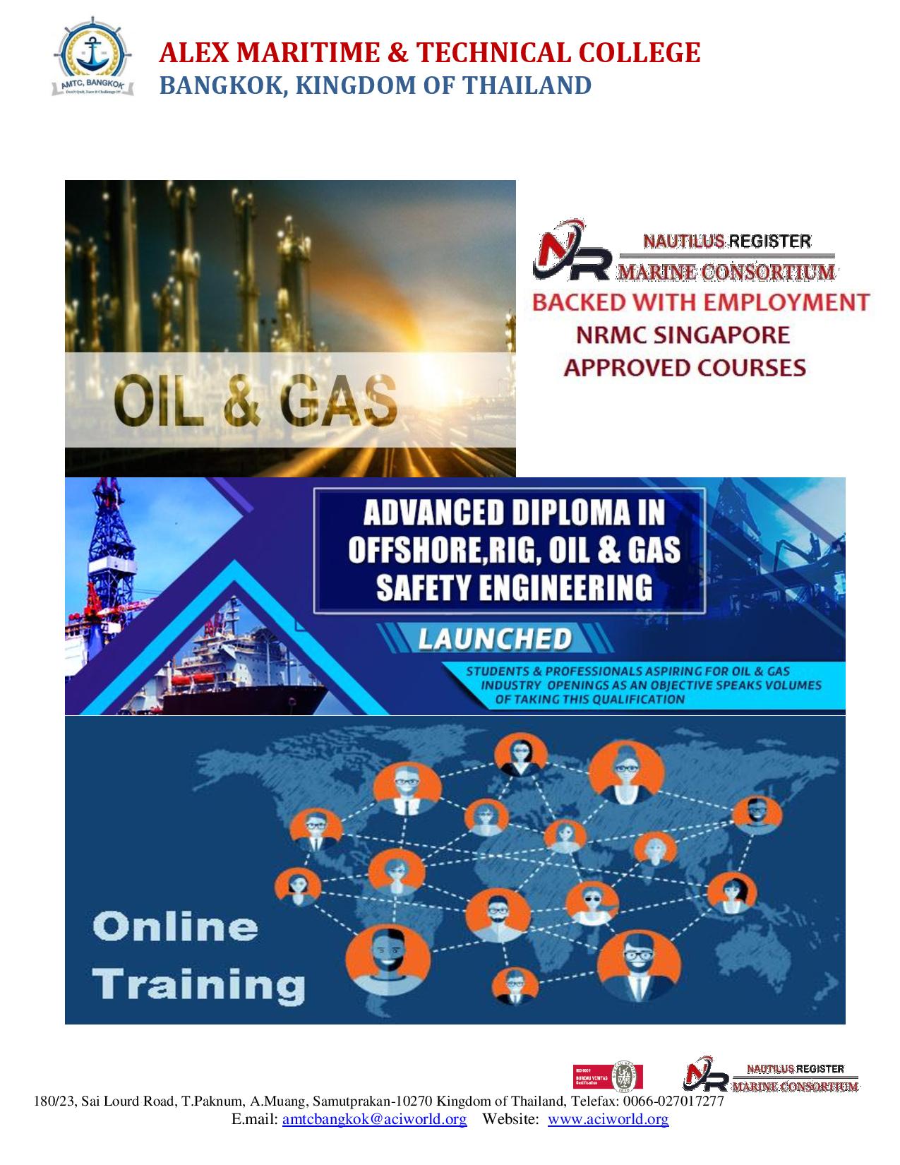 ALEX MARITIME & TECHNICAL COLLEGE (AMTC) Thailand offers an extensive range of offshore training courses, which are NRMC Singapore Approved. Established for over 10 years, we understand the complexities of offshore requirements and Endeavour to continually meet the training needs of our delegates, through industry approvals, experience and offshore knowledge.